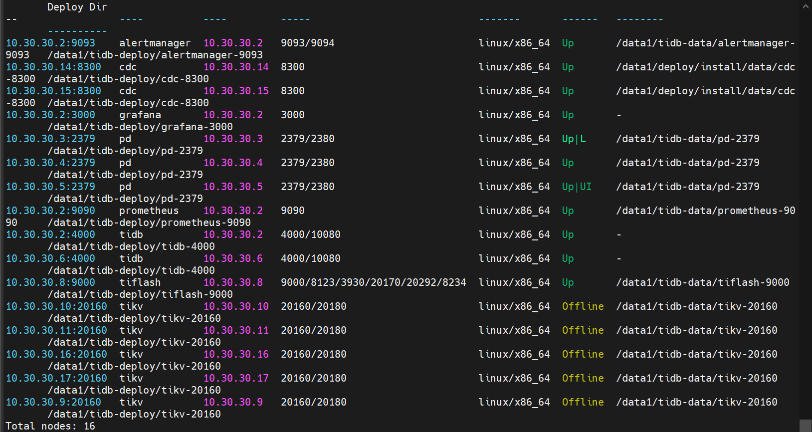 【复现路径】tiflash 突然oom 之后就一直自动重启oom 无法启动,scale-in,重新scale-out 也不行,手动删除pd 内同步store id和同步规则,后提示删除成功,查询还能查询到,tiup cluster display 显示tiflash 正常了,结果tikv 节点全部都offline 的状态了