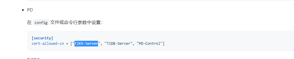 有人知道这个cert-allowed-cn是不是配置tikv证书的CN值,还是配置什么值吗?