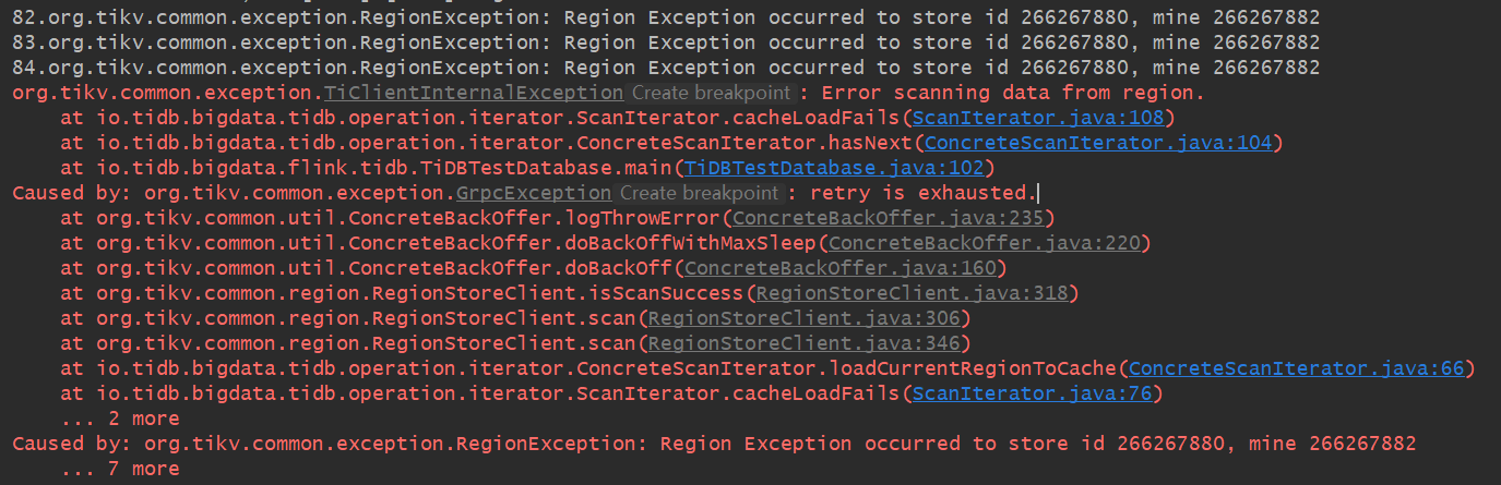 但是实际上我出现过同一条语句连续查询失败并且抛出相同异常的情况,按照逻辑来说第一次失败后,第二次拉取的应该就是正确的region数据了