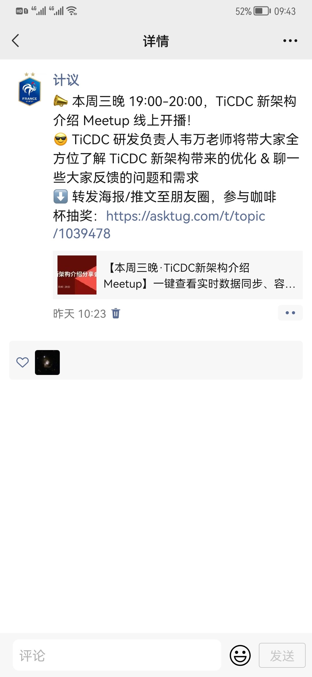 恭喜 @coderv 转发分享活动并中奖获得 TiDB 社区定制款咖啡杯!