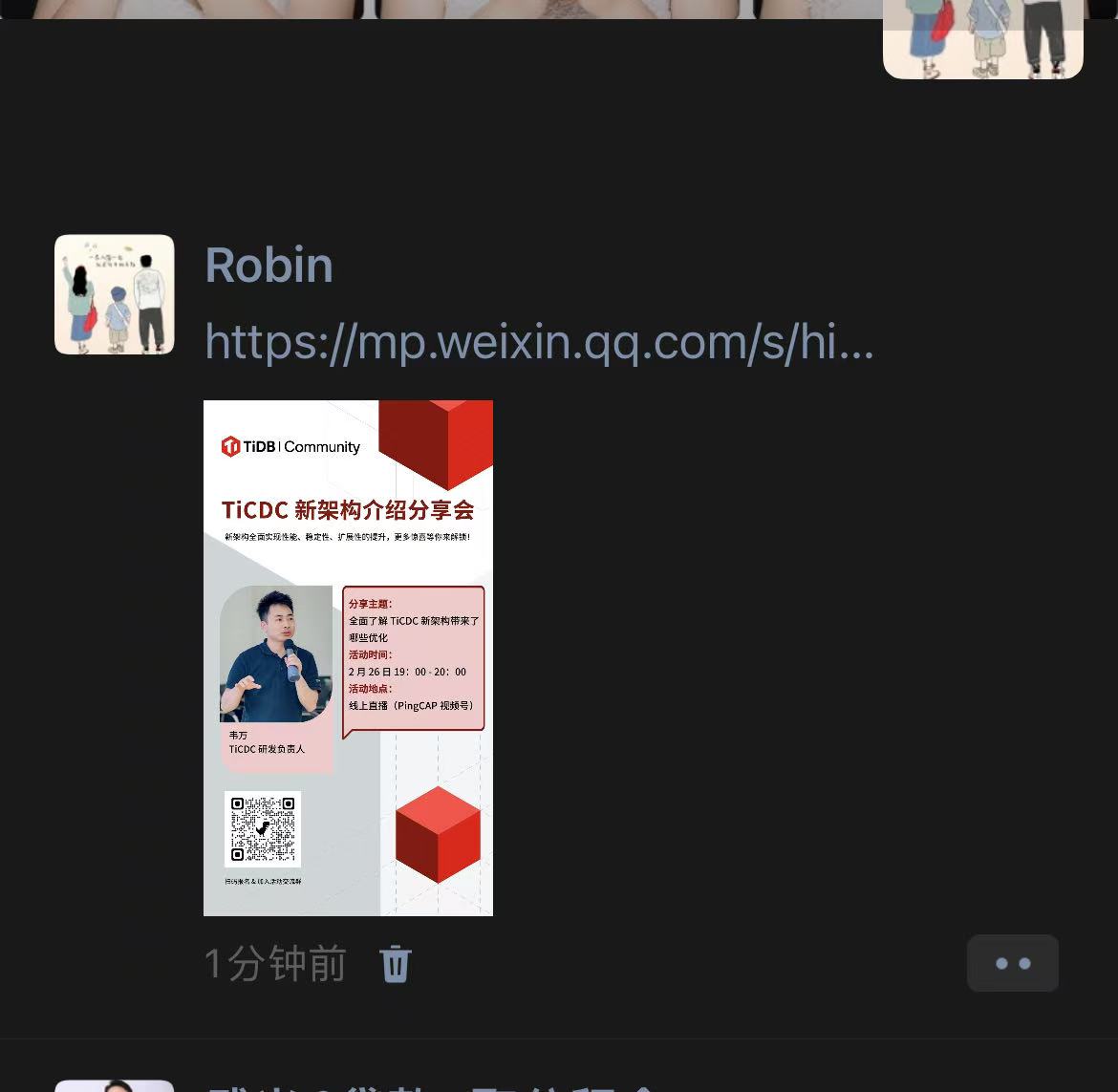 TiCDC 新架构介绍 Meetup 报名 & 评论互动 & 分享转发积分奖励已发放!感谢各位小伙伴们的参与!期待大家的试用反馈呀!