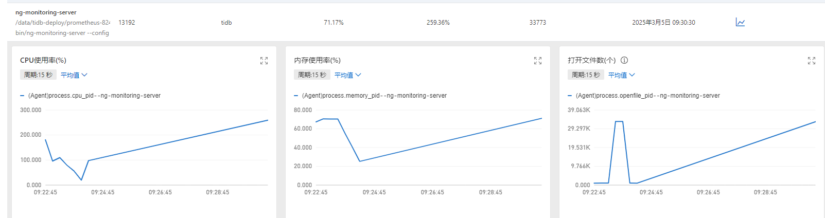 重启了promethues后,进程的内存cpu还是偏高。