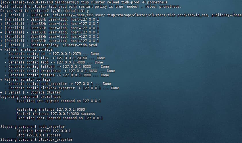 3 tiup cluster reload tidb_name -R prometheus