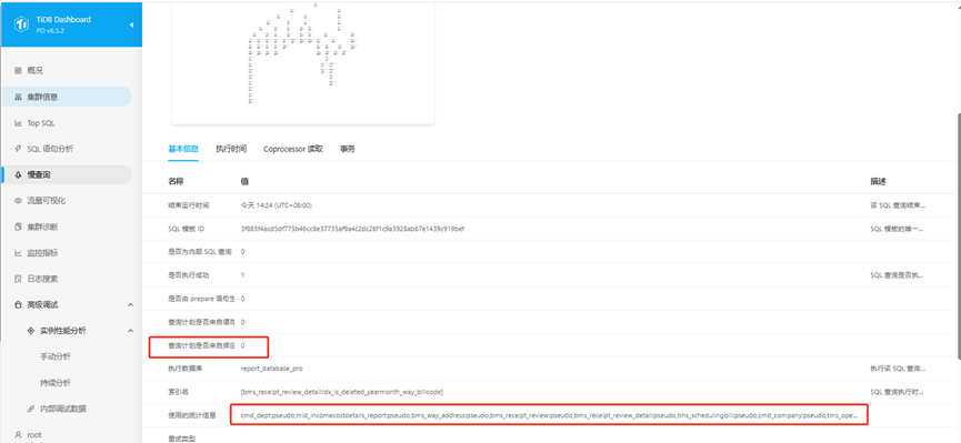 现象:应用程序发起的SQL执行非常慢,抓取的SQL在mysql客户端执行只需要2-3秒;cluster_processlist中应用发起的执行都需要1-2分钟。TIkv Coprocessor 执行耗时几十分钟;执行计划未使用bind;