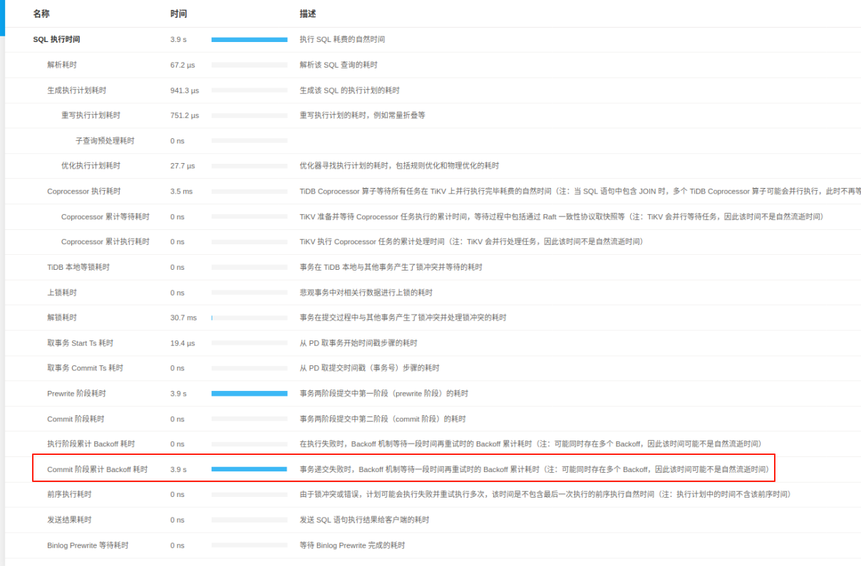 事务号:459916855678599178 的update sql语句 执行耗时消耗在 Prewrite阶段, 通过日志查看到有写写锁