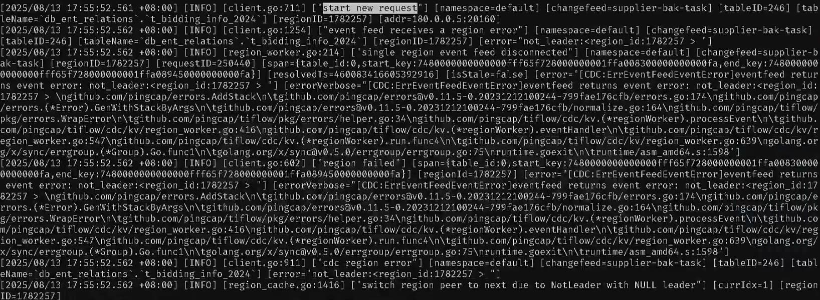 看错误是获取的region 不是Leader,cdc有重试机制,后面应该再关于这个region_id的没有报错了吧