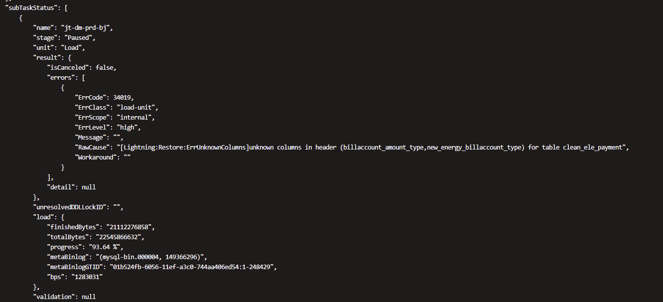 【问题复现路径】通过dm同步数据,之前都是正常的,今天重新全量同步的时候,在load阶段出错了