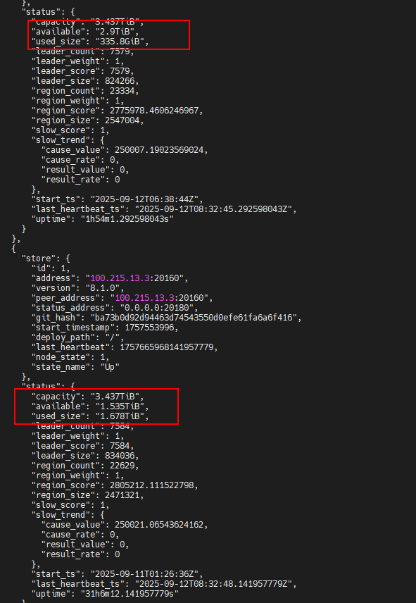 然后对进群执行compact,发现tikv的used size从之前的300G扩大到2T,我的理解是数据解压缩后重新写下去了,这个时候下线一个tikv实例(原来是4个),发现数据迁移结束后,剩下的三个tikv实例的used size变成了2.1T,明显少于预期(应该是3T左右吧),怀疑新增加的region副本还是被压缩了,然后新增一个tikv实例后,观察到新增的tikv数据迁移完成后的used size是300G,证实了迁移过去的数据还是被压缩了,这是为什么?