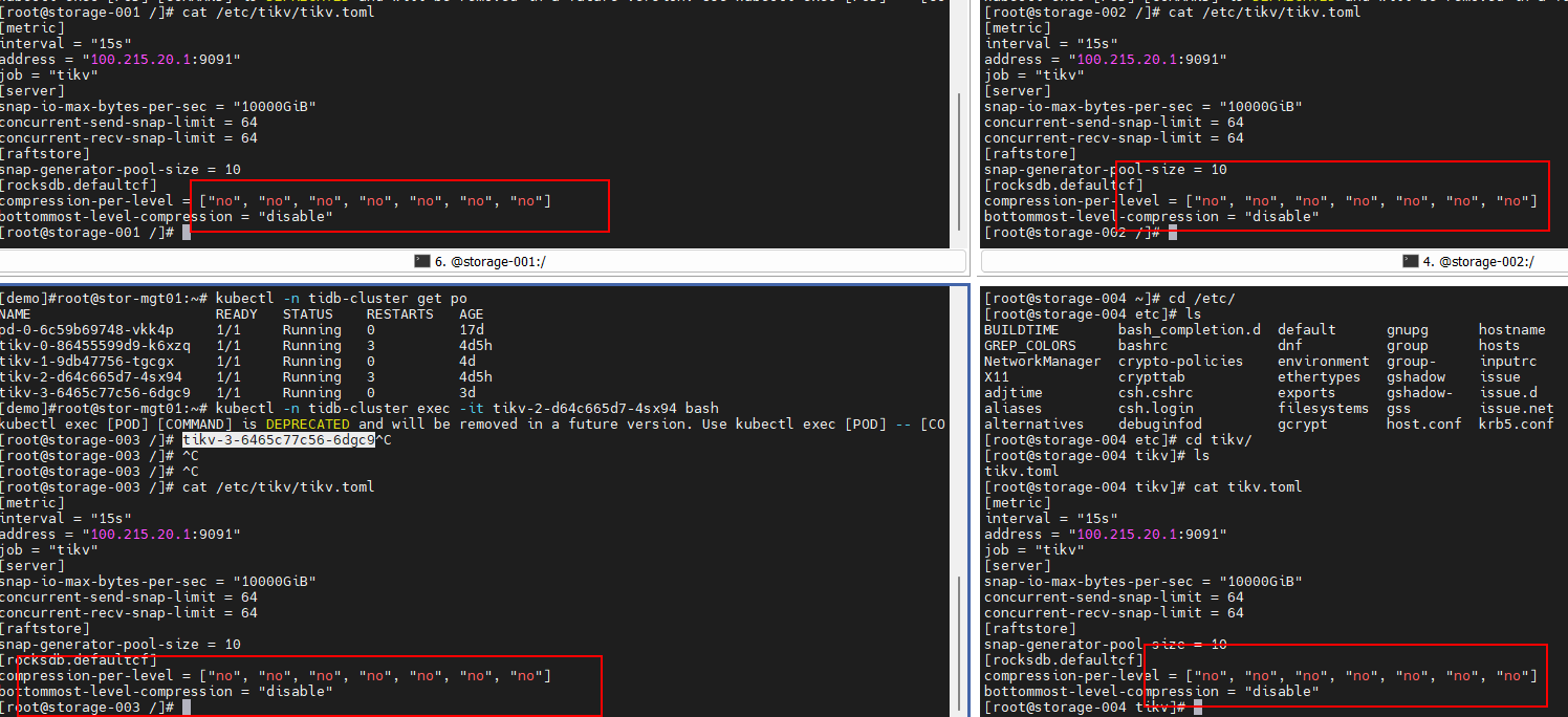 通过tikv ctl命令执行default cf的compact(tikv-ctl --host ip:port compact -d kv未指定开始位置和结束位置),发现新上线的节点需要额外指定–bottommost force才能将迁移过来的压缩数据解压缩重新写入;而下线节点过程中,运行了一段时间的tikv节点,直接执行compact就能把迁移过来的压缩数据解压缩写下去