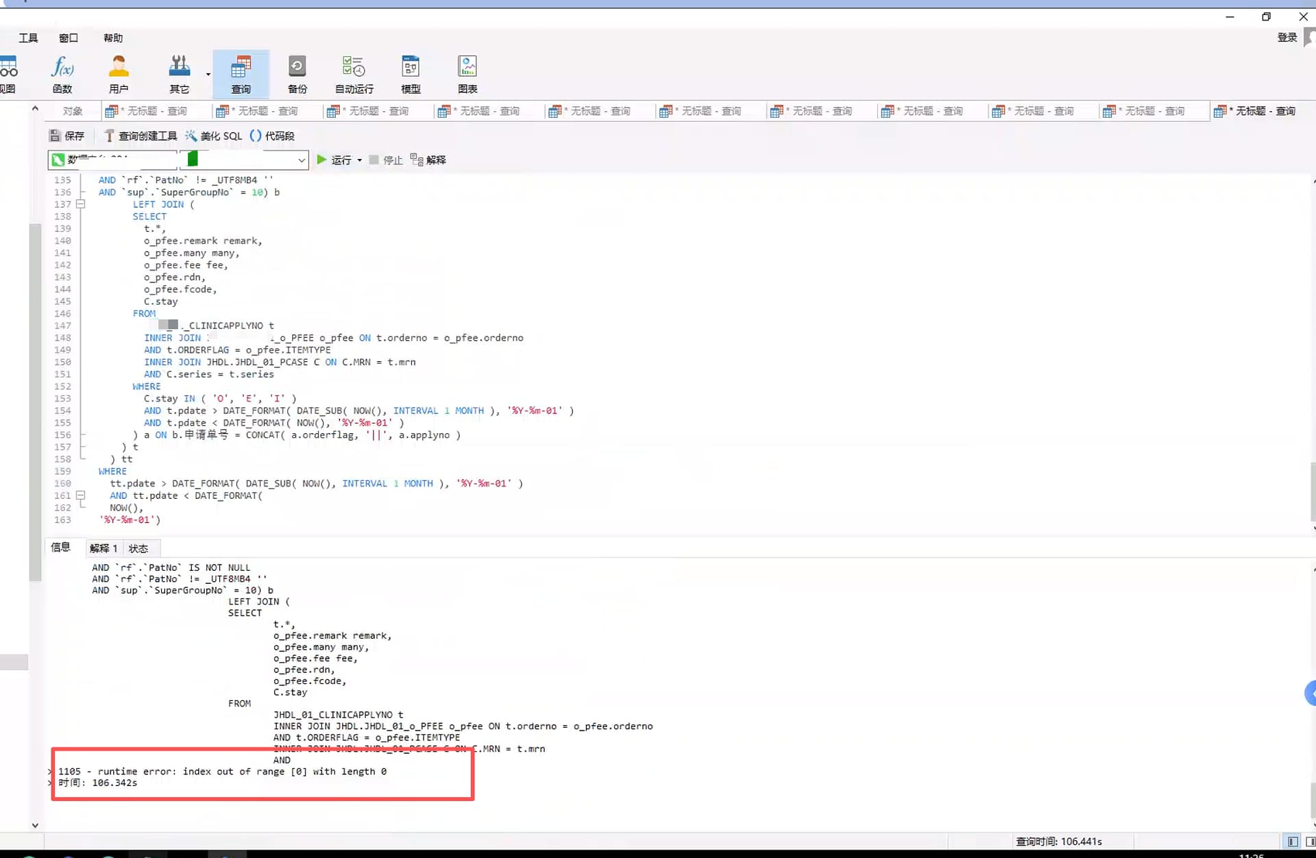 执行sql就报错