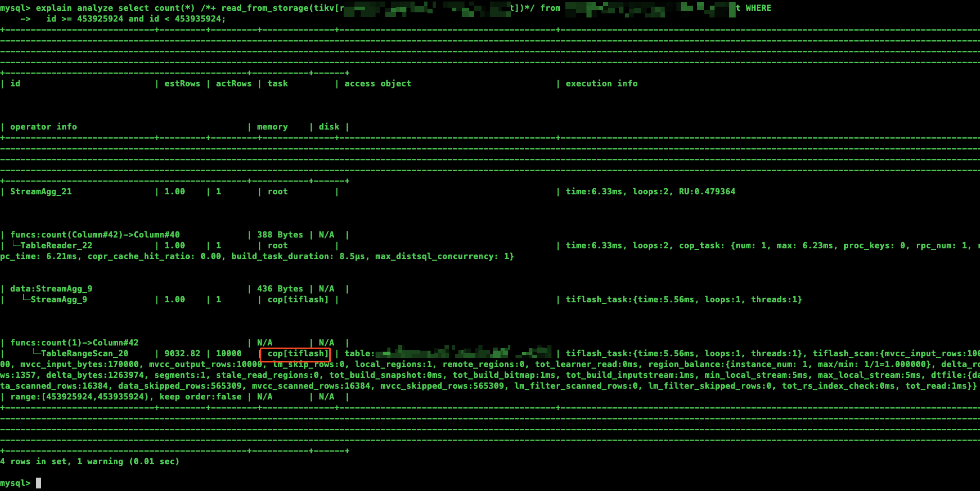 v7.5.2 版本,t1 表大约有一亿条数据,并且在 tiflash中,我直接指定 hint 到 tikv 中查询 (/+ read_from_storage(tikv[t1])/ ),发现执行计划还是走的 tiflash,请教下这个问题有人遇到过吗?