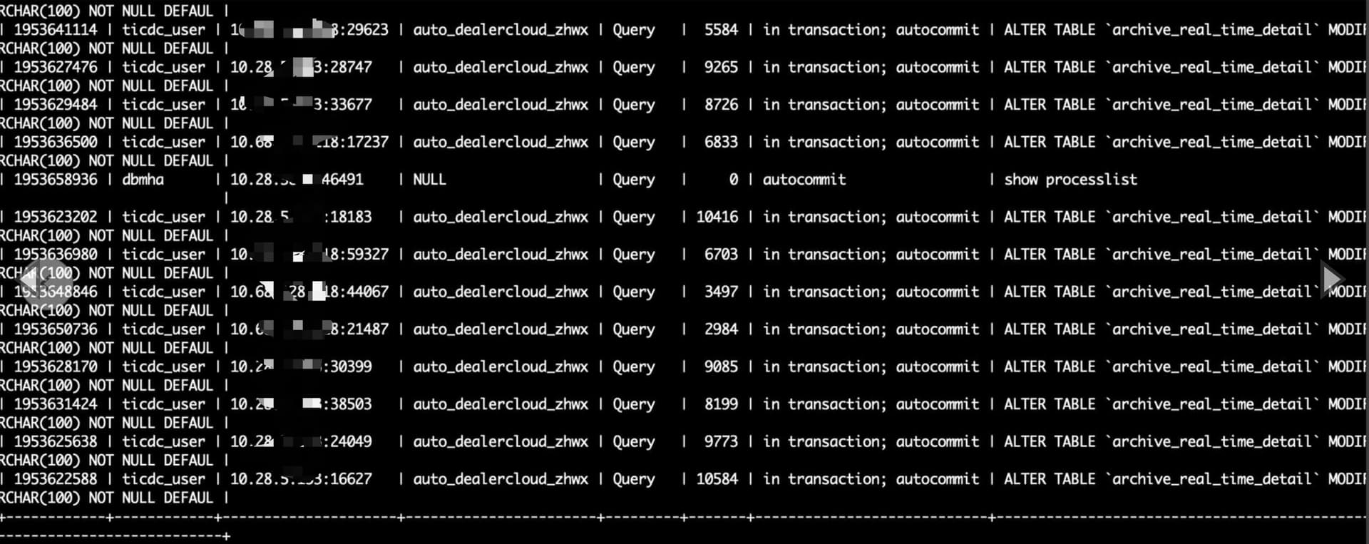 3)检查发现从库上show processslist有很多条相同的alert table SQL .