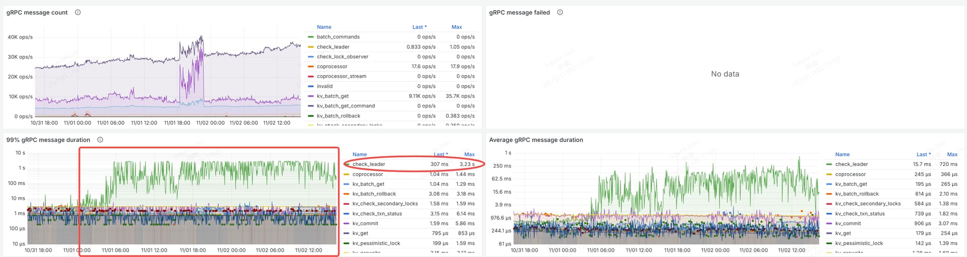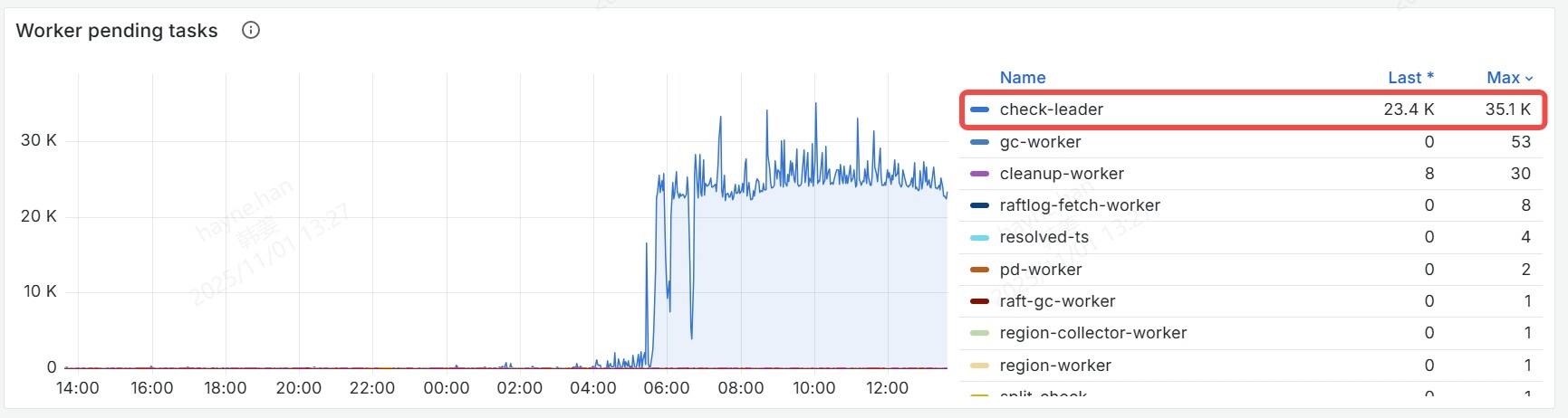现在看起来还是check leader这个task在积压,除了这个请求本身时延升高之外,好像没影响到其他请求?