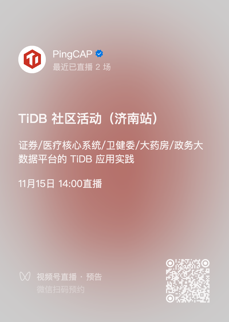 在民生领域,各行各业都在加速数字化转型和国产化改造的步伐,数据库替换后的稳定性和其带来的降本增效收益也是非常重要的数据库选型维度。11 月 15 日,TiDB 社区活动首次来到济南,由苑泽福、孔令民、葛云杰、张田、赵法威五位 TiDB 社区地区组织者发起 ,邀请证券、政务、医疗、卫健委、药房、大数据平台等领域技术负责人和我们分享 TiDB 在核心系统上的应用实践和数据库选型经验,欢迎济南地区的 TiDBer 一起线下交流!