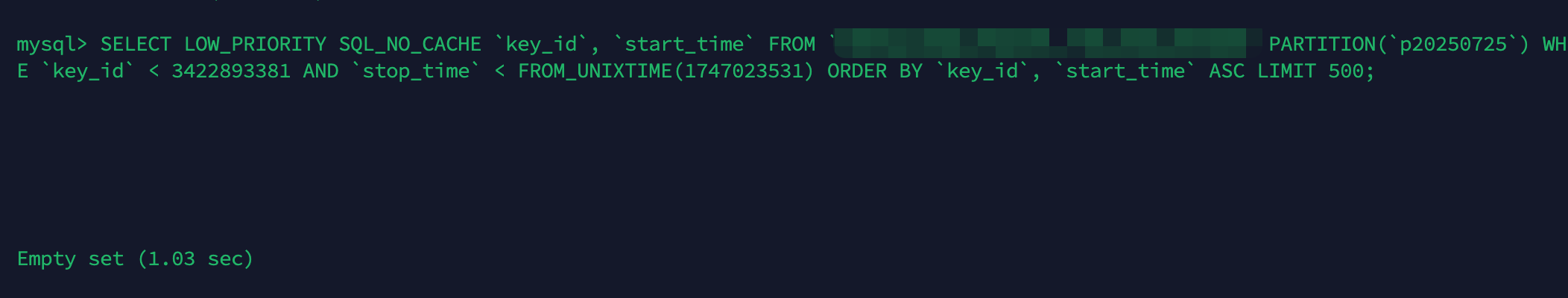 这里能看到一个问题,就是 stop_time,我们之前的 ttl 列是 start_time,在老的 tidb(v6.5.9)中是可以的,昨天在新的tidb 集群(v8.5.3)中,ttl没生效,所以改成了 start_time,重启了 ttl 开关,也还是没生效