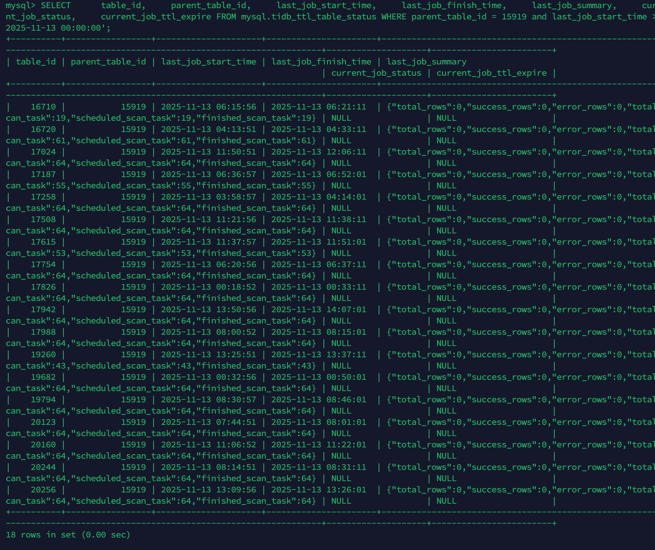 TABLE mysql.tidb_ttl_job_history order by create_time desc 查下有ttl记录吗?