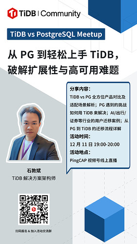 与 TiDB 解决方案专家、社区小伙伴们一起探讨和交流 PostgreSQL 迁移经验