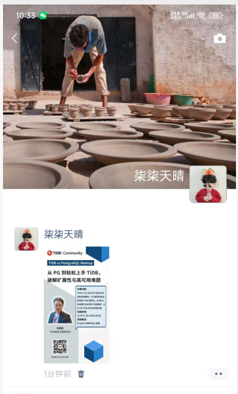 - 转发奖励:转发活动海报/推文/直播链接至朋友圈,截图发送至评论区,即可获得 TiDB 社区活动宣传伙伴专属 80 积分 & 经验值(活动后发放),抽三位转发的小伙伴送 TiDB 绝版帆布袋!