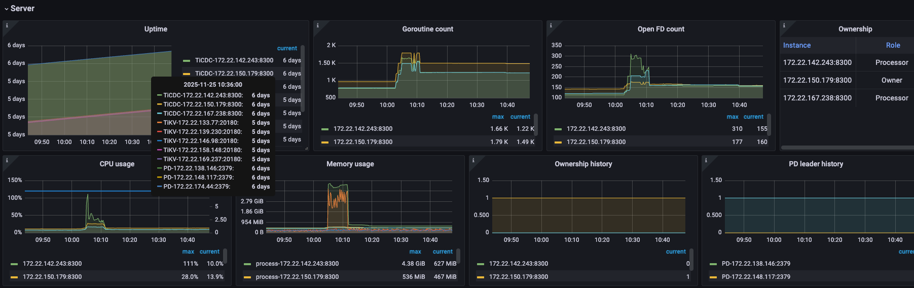 你看下下游 tidb 的监控呢?下游写入会有区别吗?