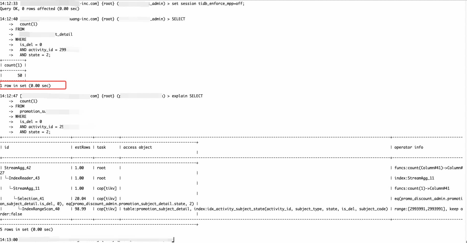tidb_allow_mpp开,tidb_enforce_mpp关,不要开enforce_mpp