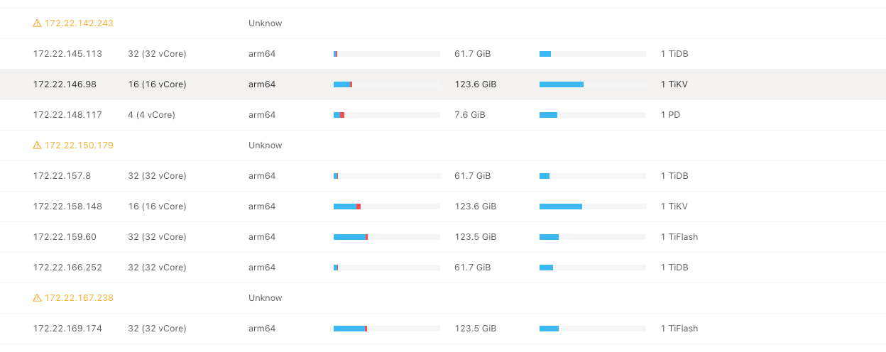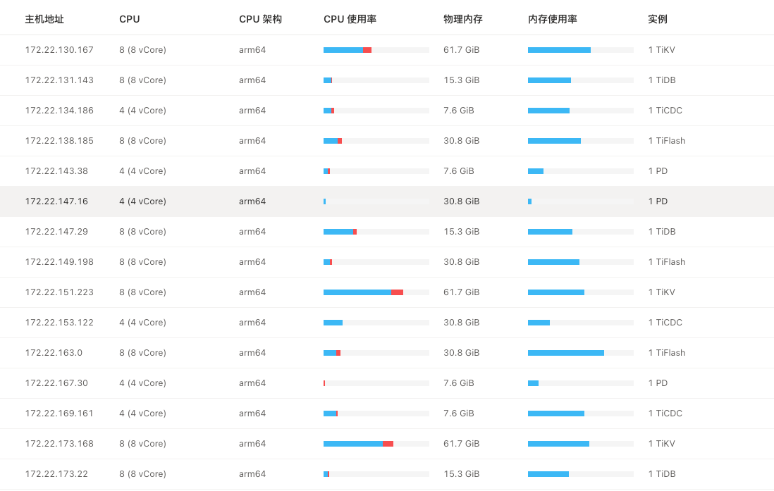 【资源配置】进入到 TiDB Dashboard -集群信息 (Cluster Info) -主机(Hosts) 截图此页面