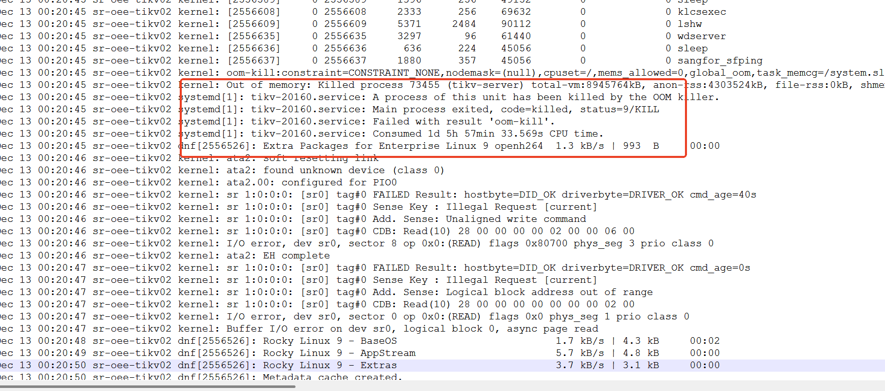 检查一下系统的 ulimit -n,如果 FD limit 设置过低,TiKV(通常需要高并发文件句柄)在启动时可能因无法打开 SST 文件而卡死或崩溃。