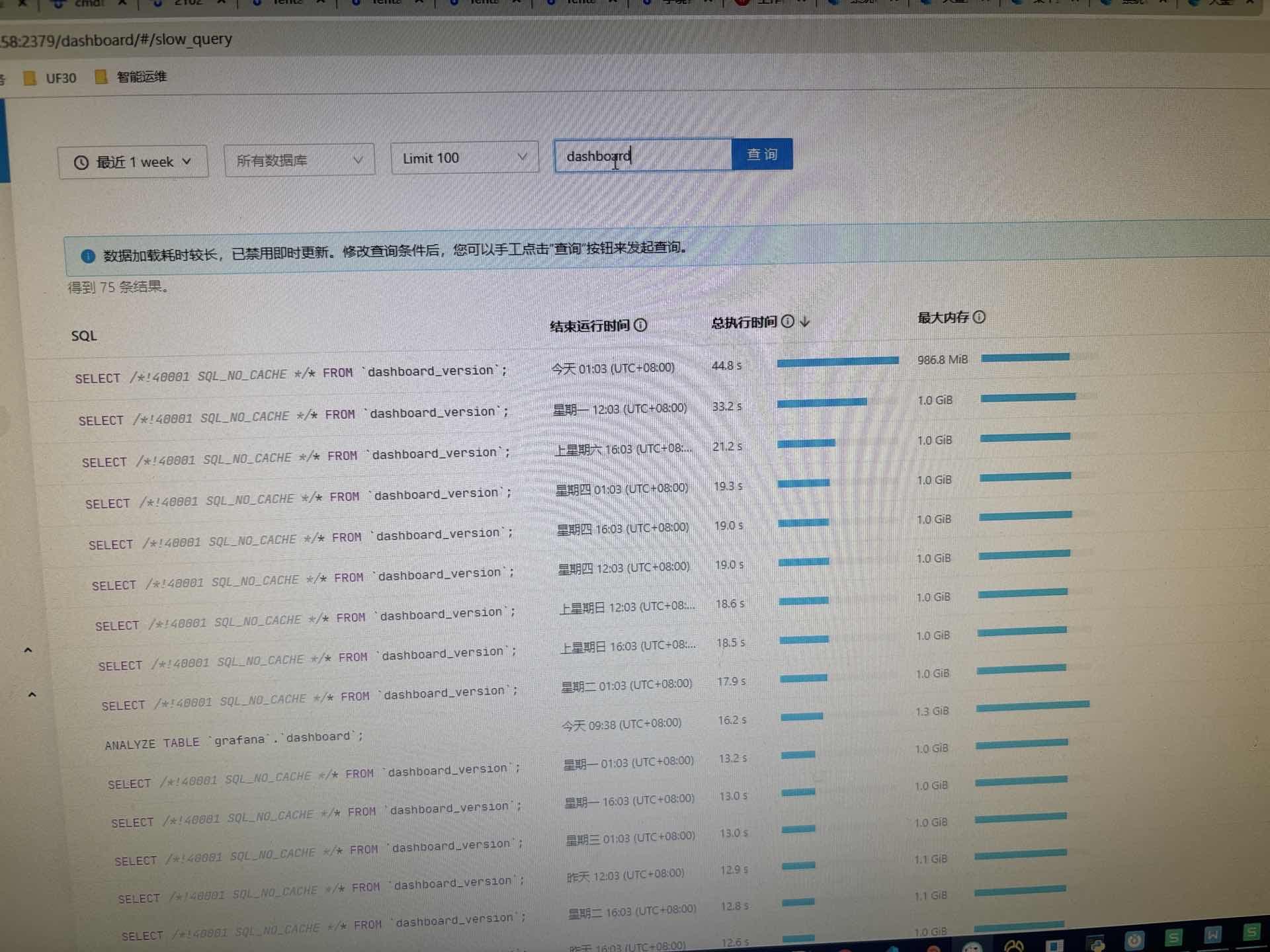 这个表很大吗?怎么内存干掉了1G。count一下看看表有多少数据?