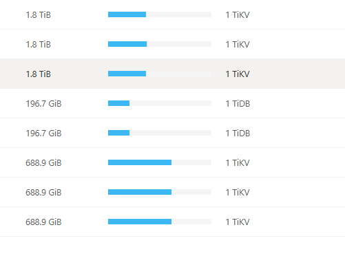 注:目前上T的磁盘都是nvme的,几百G的是普通ssd.每台Tikv配置都是32C64G