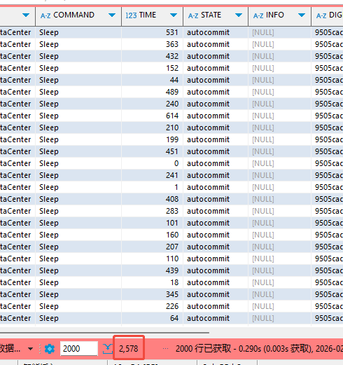 Sleep 代表当前未执行 SQL