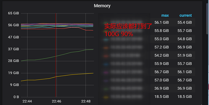 您好: 您把实例和ip都隐藏了,但是从监控看,应该是符合的。 tikv里的内存是实例的内存值,你可以把同一个实例的内存相加。 overview里的可用内存也能看到这些实例几乎没有可以使用的内存了。