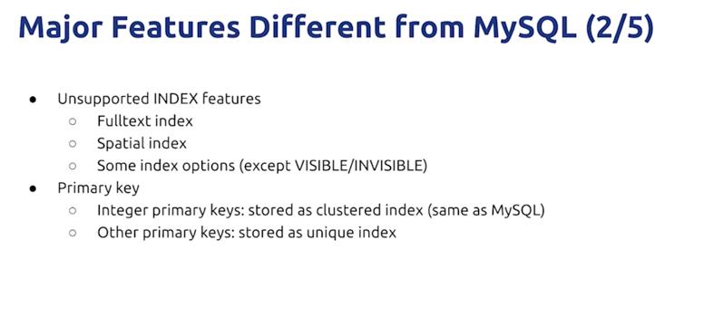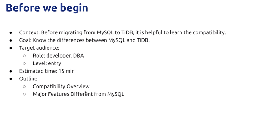 课程名称:课程版本(101/201/301)+ 2.4 Behavior Differences Between MySQL and TiDB(TiDB 与 MySQL 的差异)