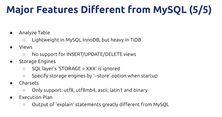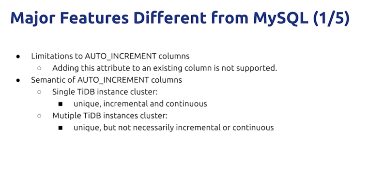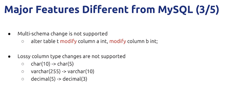 TiDB 和 MySQL 在语法、功能和行为上的主要差异
