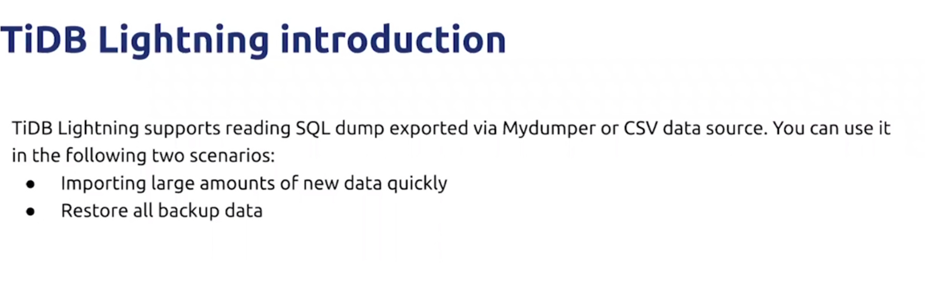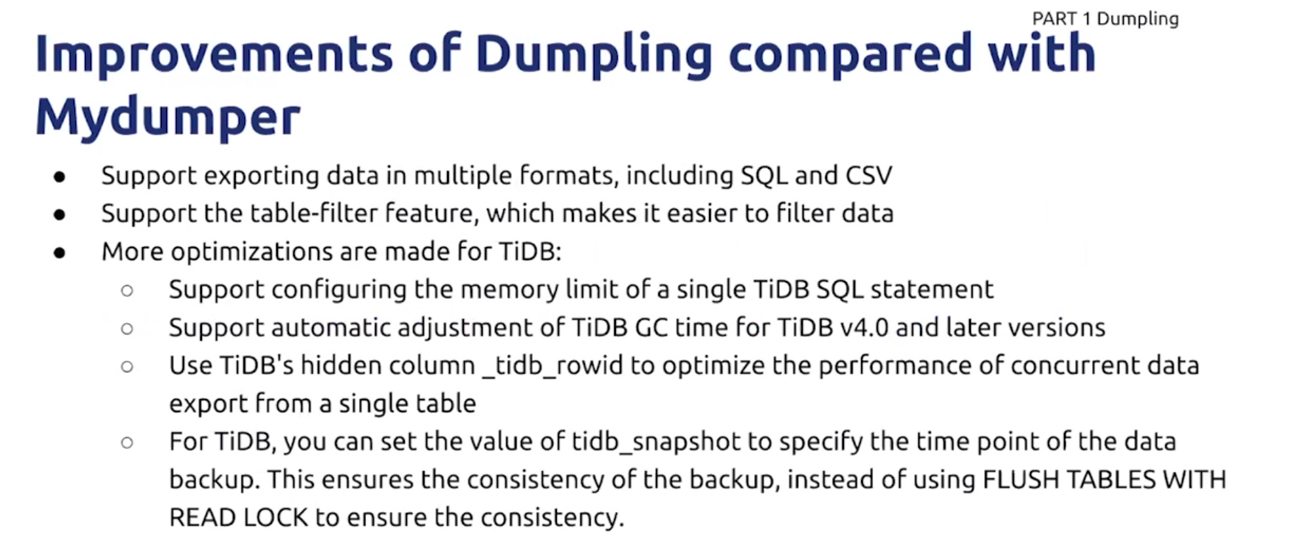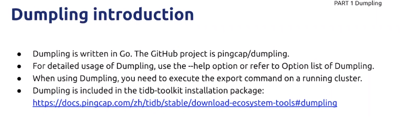dumpling tidb lightning tidb data migration(dm 2.0)