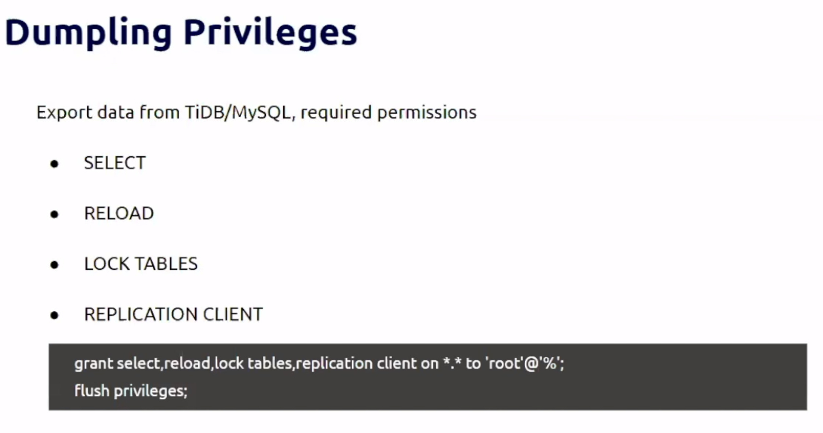 dunpling 导出数据sql文件 需要权限 最小授权原则